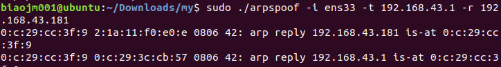 arpspoof -i ens33 -t 192.168.43.181 192.168.43.1