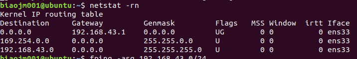 在Ubuntu中查看网关:终端运行命令:netstat -rn