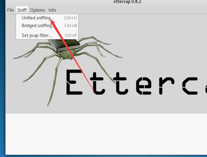 之后我们要用ettercap,进行嗅探。(此工具有图形化的)