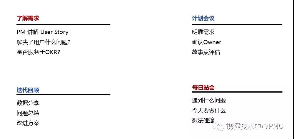 第三步,迭代进行中时,每天进行每日站会,这个站会我们已经持续了8个月了,效果很好,大家的参与感很强,集中两点:今天要做什么?是否遇到问题?