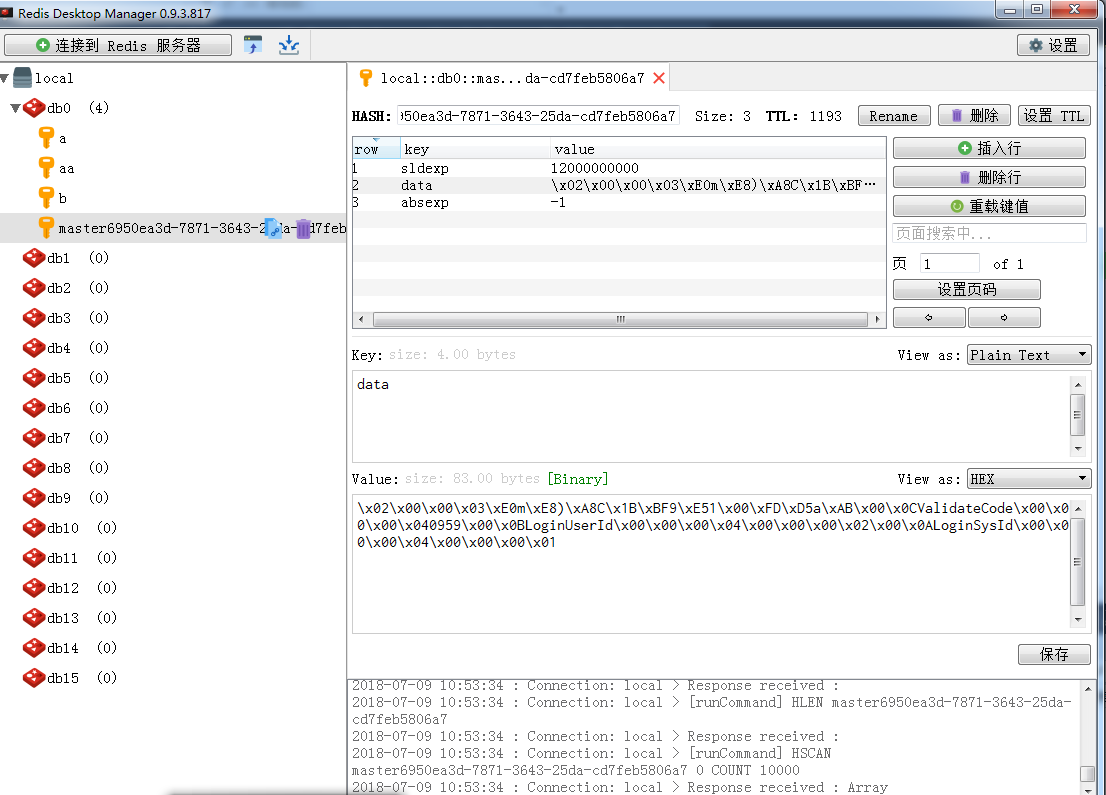 页面运行HttpContext.Session.GetString("key"),然后用Redis管理工具RedisDesktopManager查询Session是否入库。