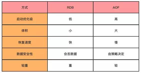 通过下面的表示,我们可以从几个方面对比一下RDB与AOF,在应用时,要根本自己的实际需求,选择RDB或者AOF,其实,如果想要数据足够安全,可以两种方式都开启,但两种持久化方式同时进行IO操作,会严重影响服务器性能,因此有时候不得不做出选择。