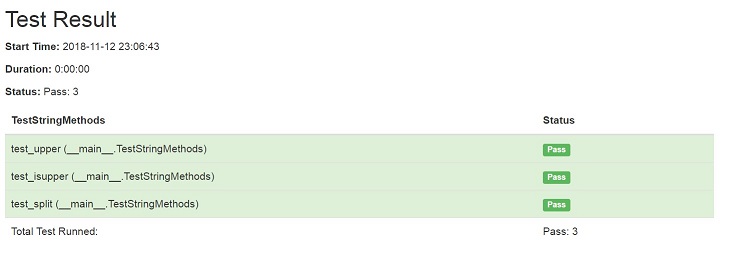 runner = HtmlTestRunner.HTMLTestRunner(output='MyUnitTest')