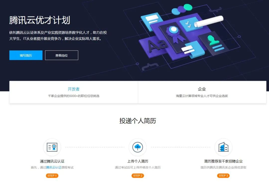 不仅如此,对于IT从业者而言,通过腾讯云系统化的培训可以提高自身对工作的快速适应能力,强化对云产品的熟悉了解,提升个人综合能力。如果能在入职前获得TCA/TCP等腾讯云认证专业证书,对应聘者也是个加分项,个人简历会优先进入企业招聘人才库,供企业择优录用。