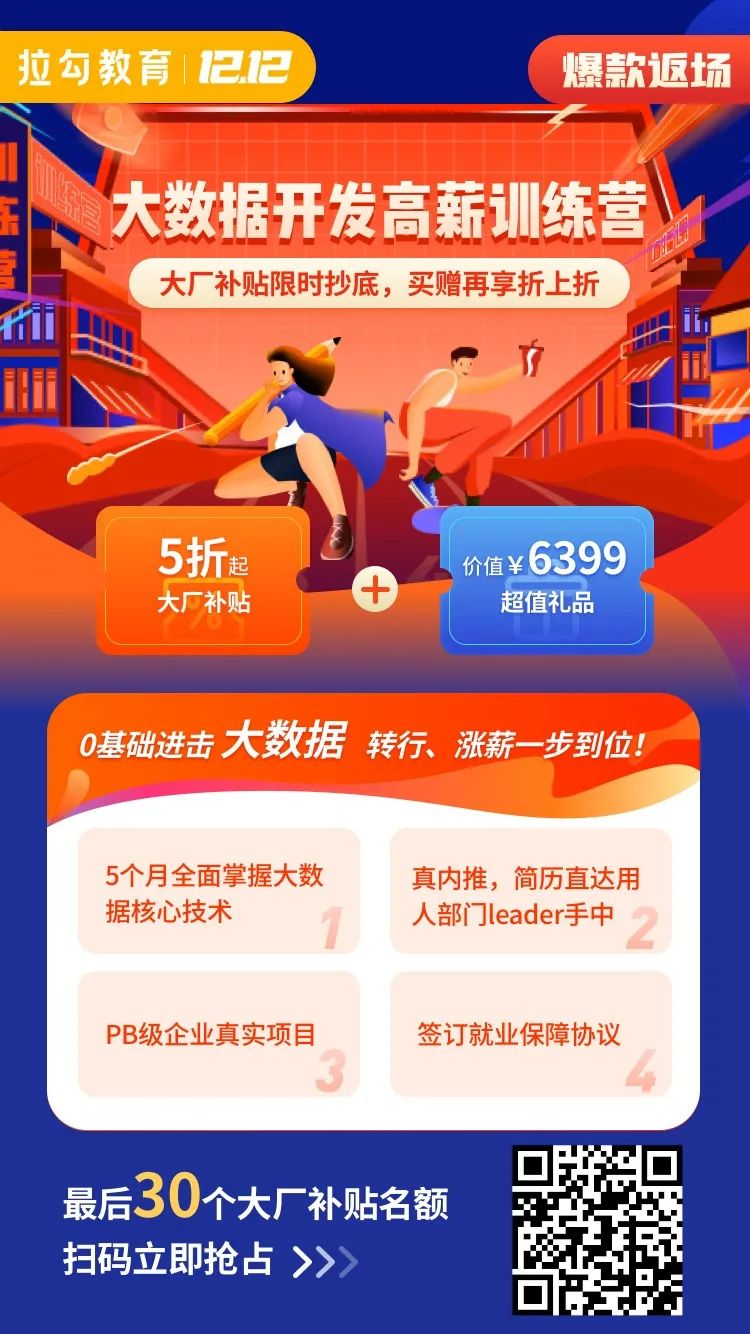 选择课程的时候其实也要好好评估它背后的课程开发团队,像拉勾网的《大数据开发高薪训练营》,我还是比较推荐的。以前我也是通过拉勾网跳槽涨薪的,他们成立 7 年了,最懂互联网企业的用人需求了。