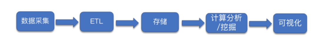 大数据开发工作涉及大数据处理的完整流程,包括:数据采集、ETL、数据存储、计算分析/挖掘、可视化展示。