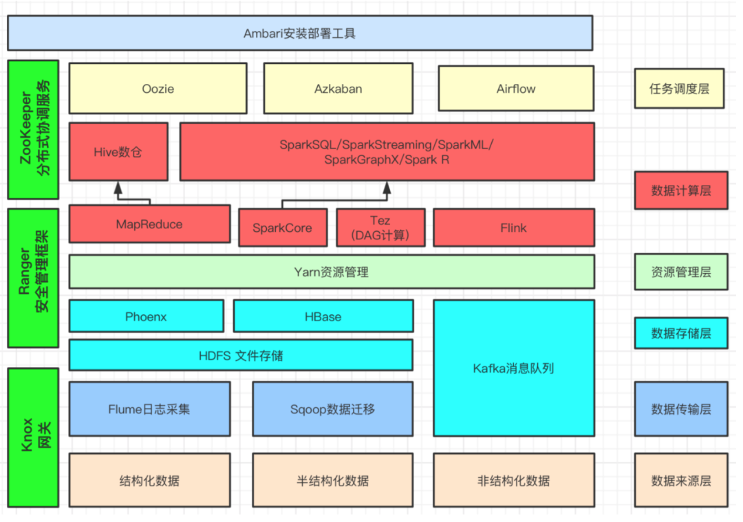 数据计算分析层:MapReduce、Spark、Flink、Tez、Hive、ClickHouse、Kudu、Kylin、Druid、Python、Spark MLLib、Tensorflow等