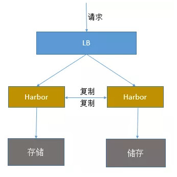 共享后端存储算是一种比较标准的方案,就是多个 Harbor 实例共享同一个后端存储,任何一个实例持久化到存储的镜像,都可被其他实例中读取。通过前置 LB 进来的请求,可以分流到不同的实例中去处理,这样就实现了负载均衡,也避免了单点故障: