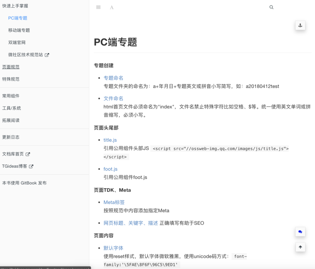 PC端专题:快速上手、文件目录、页面头部、通用title、通用foot、统计代码、兼容测试