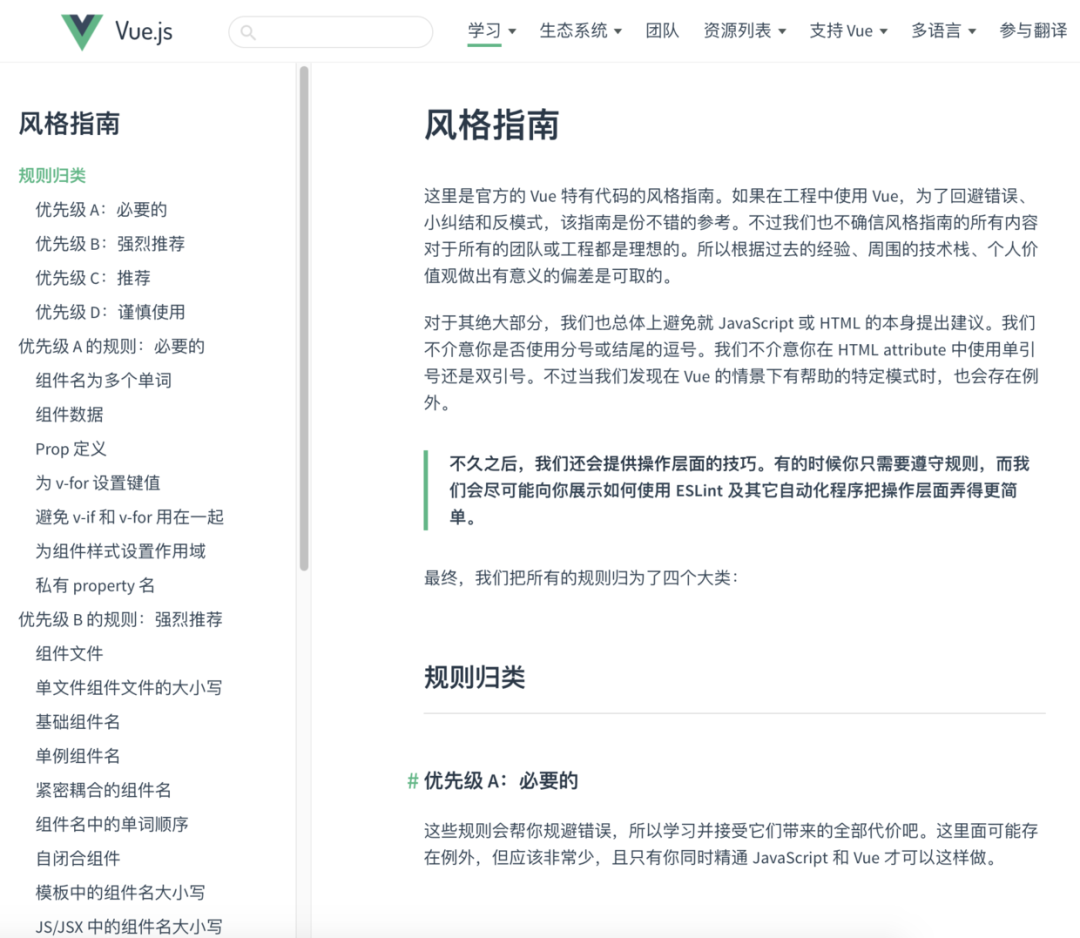 如果在工程中使用 Vue,为了回避错误、小纠结和反模式,该指南是份不错的参考。
