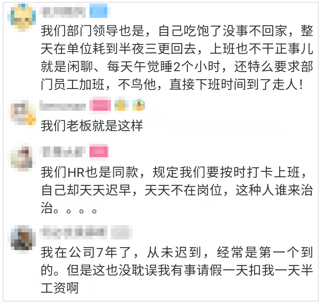 @有网友说:准点下班,被说早退,因为打卡准点说明你提早下来了