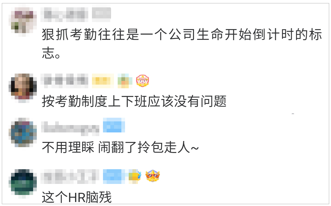 @有网友说:记住,一般公司快不行了,做的第一件事就是抓劳动纪律。