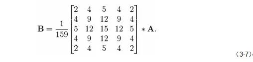 以一个5×5的高斯滤波模板为例(见公式3-7),对图像A应用高斯滤波可得B。下面对图像的光强梯度统计都基于图B。