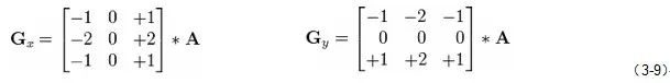 数学上在原图像上应用3×3的掩膜计算水平和垂直两个方向的变化梯度近似值。如果我们定义A为源图像,和分别作为一幅图像的水平近似梯度和垂直近似梯度,计算方式如下: