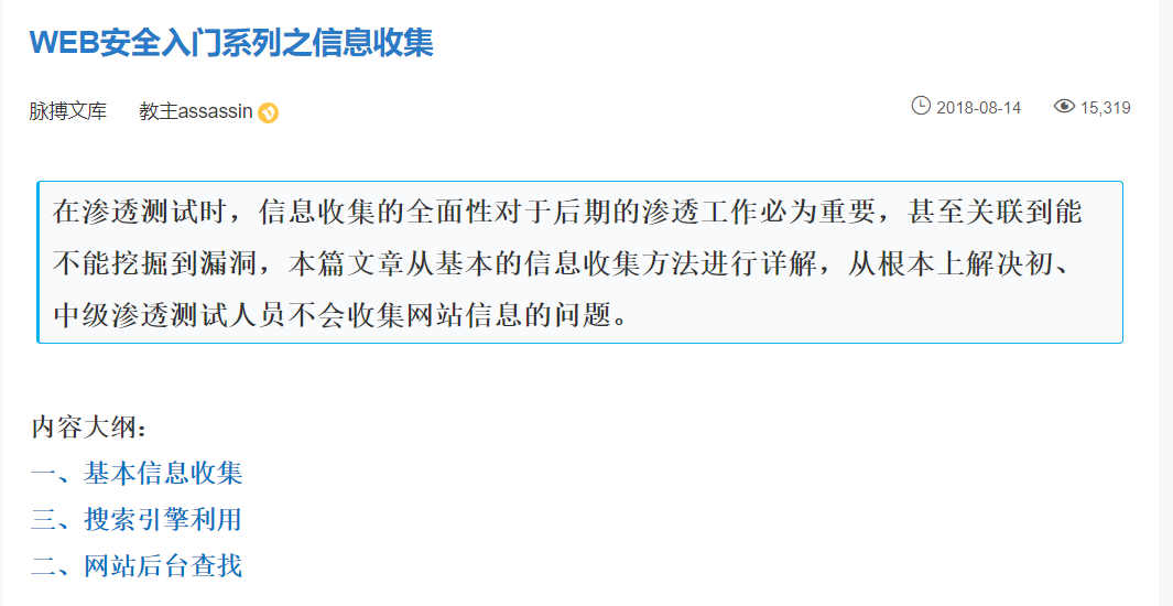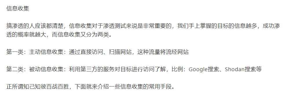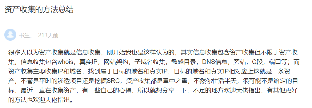 两者收集的思路不能局限,发散而聚合,特此整合一些优秀的信息收集,资产收集文章,分享出来一起学习大佬们的思路,最终形成自己的收集体系。