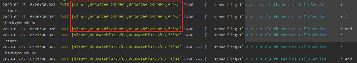 可以看到在定时任务中,每一次定时任务都会产生一个新的 Trace ,并且在调用过程中, Span Id 都是一致的,这个和普通的调用不一样。