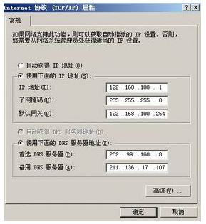 注:192.168.100.1 是私有地址,是不能直接在Internet网络中应用的,上Internet要转为公有地址,下面详细说明。