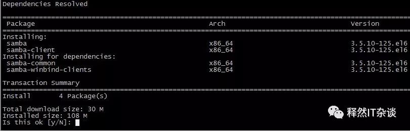 有依赖关系的包samba-common、samba-winbind-clients、libsmbclient将自动安装上去。