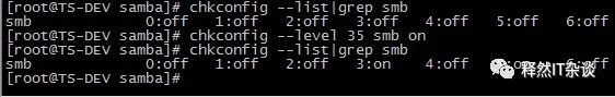 # chkconfig --level 35 smb on //在3、5级别上自动运行samba服务 |