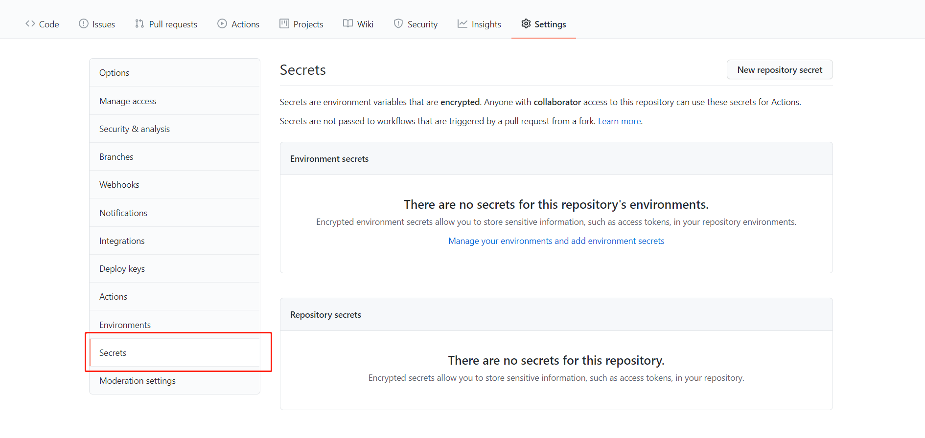 - 这一步需要几个环境变量,根据你使用的action的不同也会发生改变,可以到具体的文档中查看。