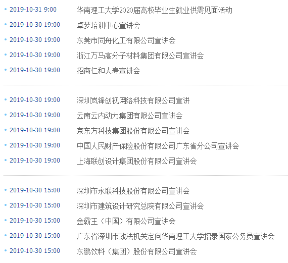 如果有自己感兴趣的企业,也可以到那些学校去听宣讲会、投简历、面试。那些985、211的学校官网的招聘信息很丰富的,比如华南理工大学的:
