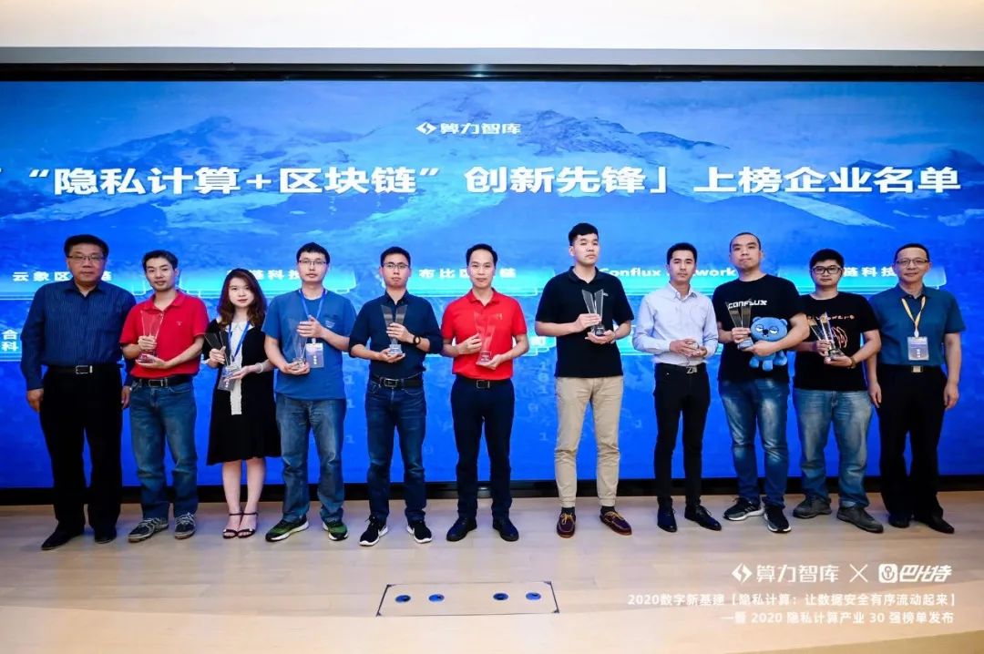 7月5日,由算力智库联合巴比特、上海人工智能发展联盟、长三角大数据产业合作联席会议、上海现代服务业联合会金融科技专委会等机构共同举办的国内首个隐私计算产业论坛【“隐私计算:让数据安全有序流动起来”暨2020隐私计算产业30强榜单颁奖典礼】在杭州区块链国际周上强势登场。溪塔科技凭借过硬的技术实力和诸多应用场景实践,荣获「“隐私计算+区块链”创新先锋」奖项。