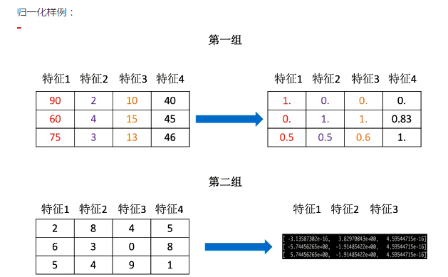 归一化及标准化实例代码: