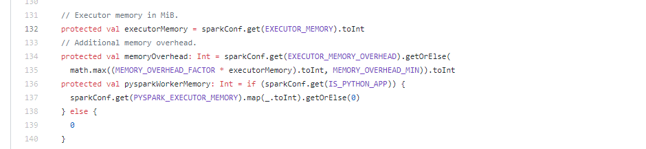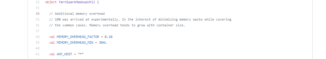 以spark 2.4为例,在YarnAllocator.scala 中对memoryOverhead.scala 中做了计算定义: