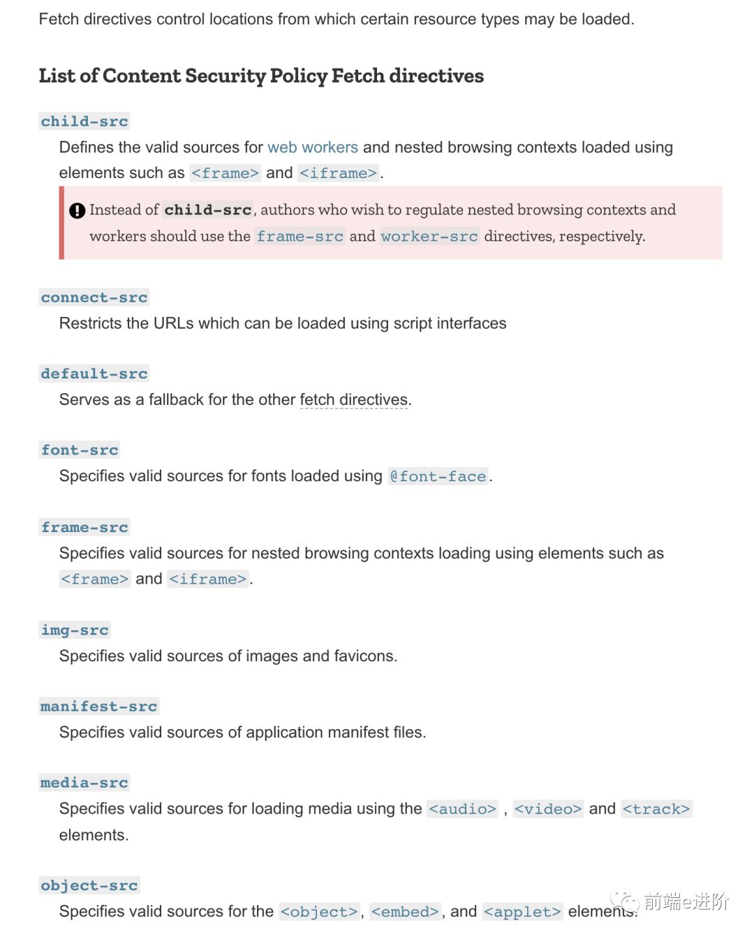 本质也是白名单,通过设置白名单, 我们可以设置允许浏览器加载哪些外部资源。