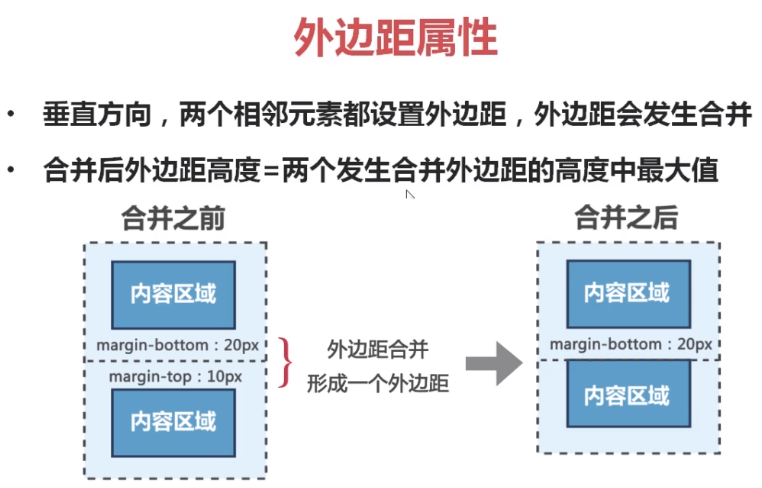 如果垂直方向上,两个相邻的元素都设置外边距,外边距会合并,合并后外边距的高度采用的是外边距最大的那个值;