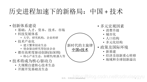 在历史加速下的新格局里,它的主旋律是什么?我们认为毫无疑问是“中国+技术”。中国过去40年的经济发展,取得了令人非常骄傲的成绩,它本质上是“中国+开放市场”,下一阶段是“中国+技术”,在历史上这是巨大的市场机会和发展机会。