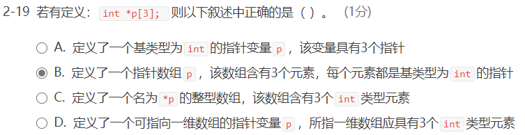 该语句的含义应该是定义了一个指针变量p,两个int 类型的普通变量。