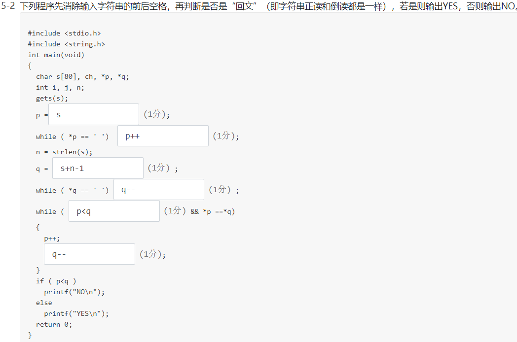 while ( *q == ' ') q--(1分) ;