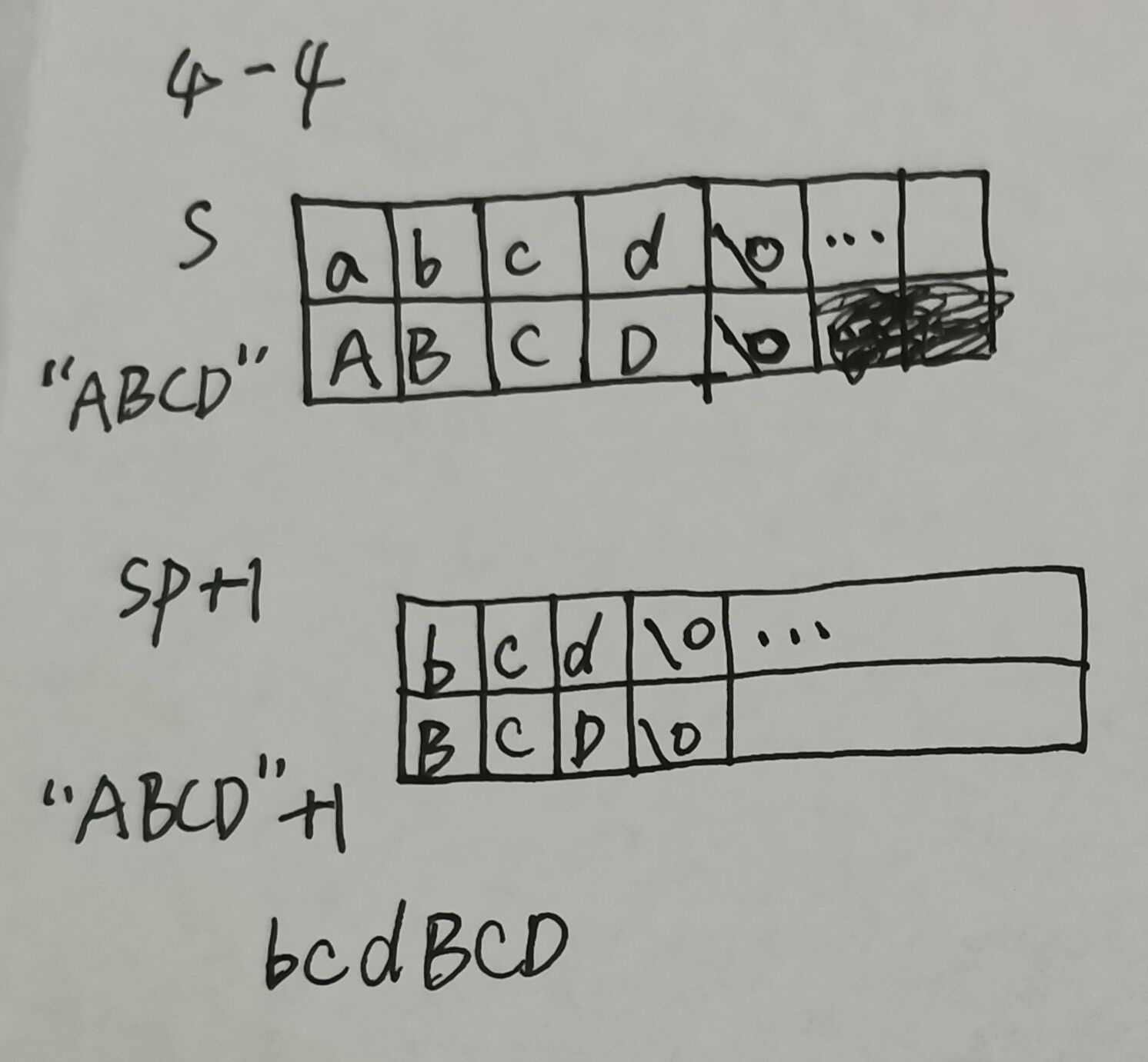 当实现传送完三个字符后,由于for循环里的语句执行完后i++,因此这时候i=4,此时要进行存放空格的操作,