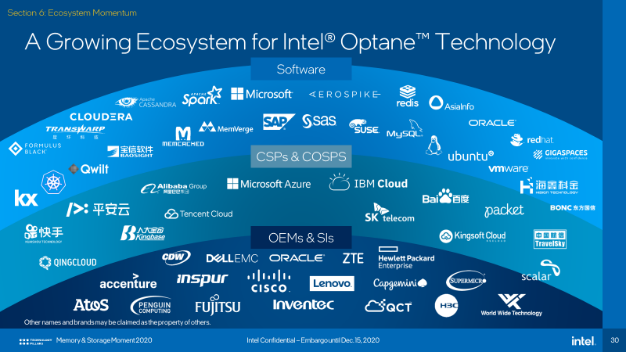 对英特尔来说,傲腾是独一无二的技术,它极具创新力,并会引导行业和用户重新思考内存和存储的解决方案。目前,越来越多的行业、机构开始应用傲腾技术来改进存储系统,傲腾生态逐渐壮大。