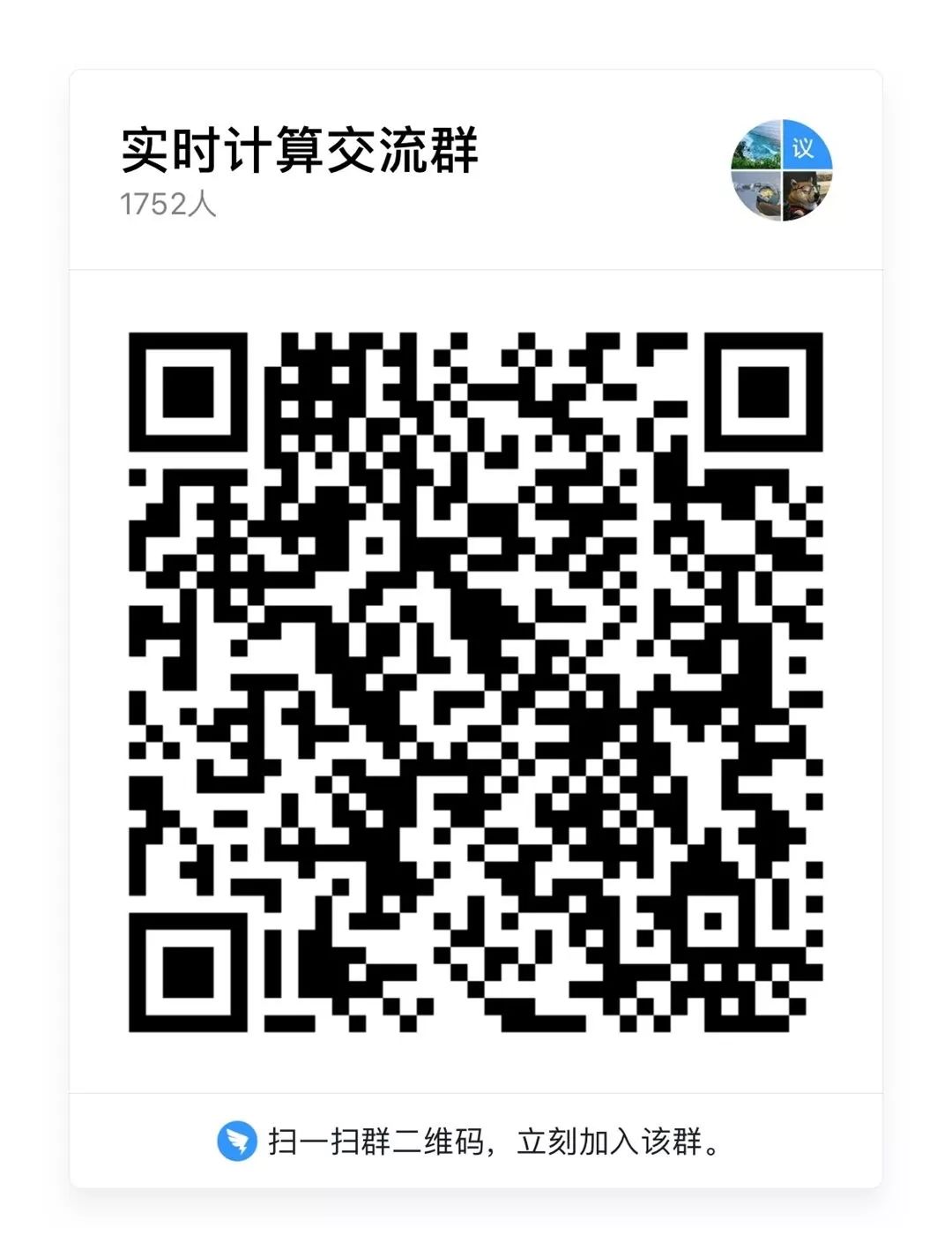 “ 钉钉扫描二维码,加入实时计算交流群 ”