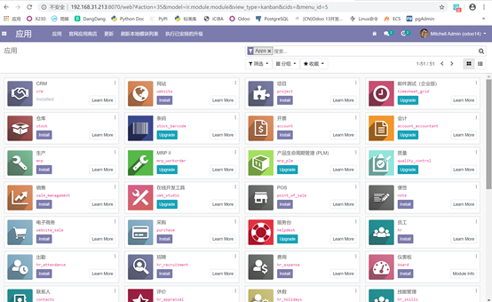 启动Odoo 14