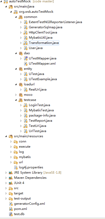 以上用到的 TestNg+maven+mybatis+HttpClient+ extentreports+moco+sqllit+mysql,这自动化代码会持续优化, 接口全部用moco模拟