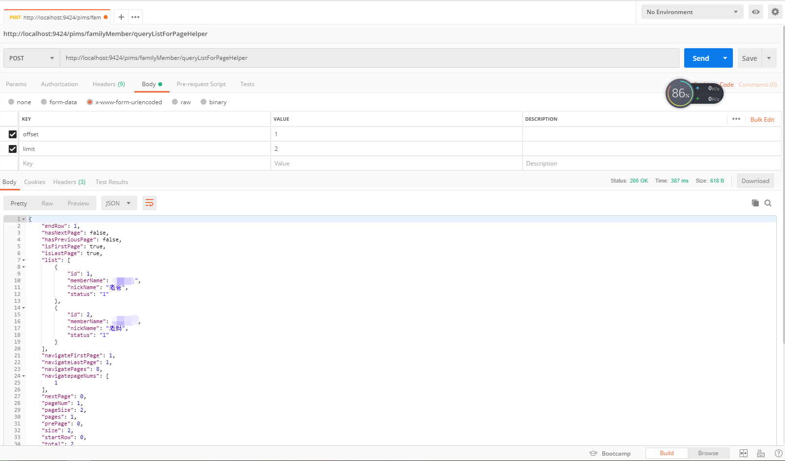 ==> Preparing: select id, member_name, nick_name, status, created_by, created_at, modified_by, modified_at from base_family_member where status = 1 LIMIT ?