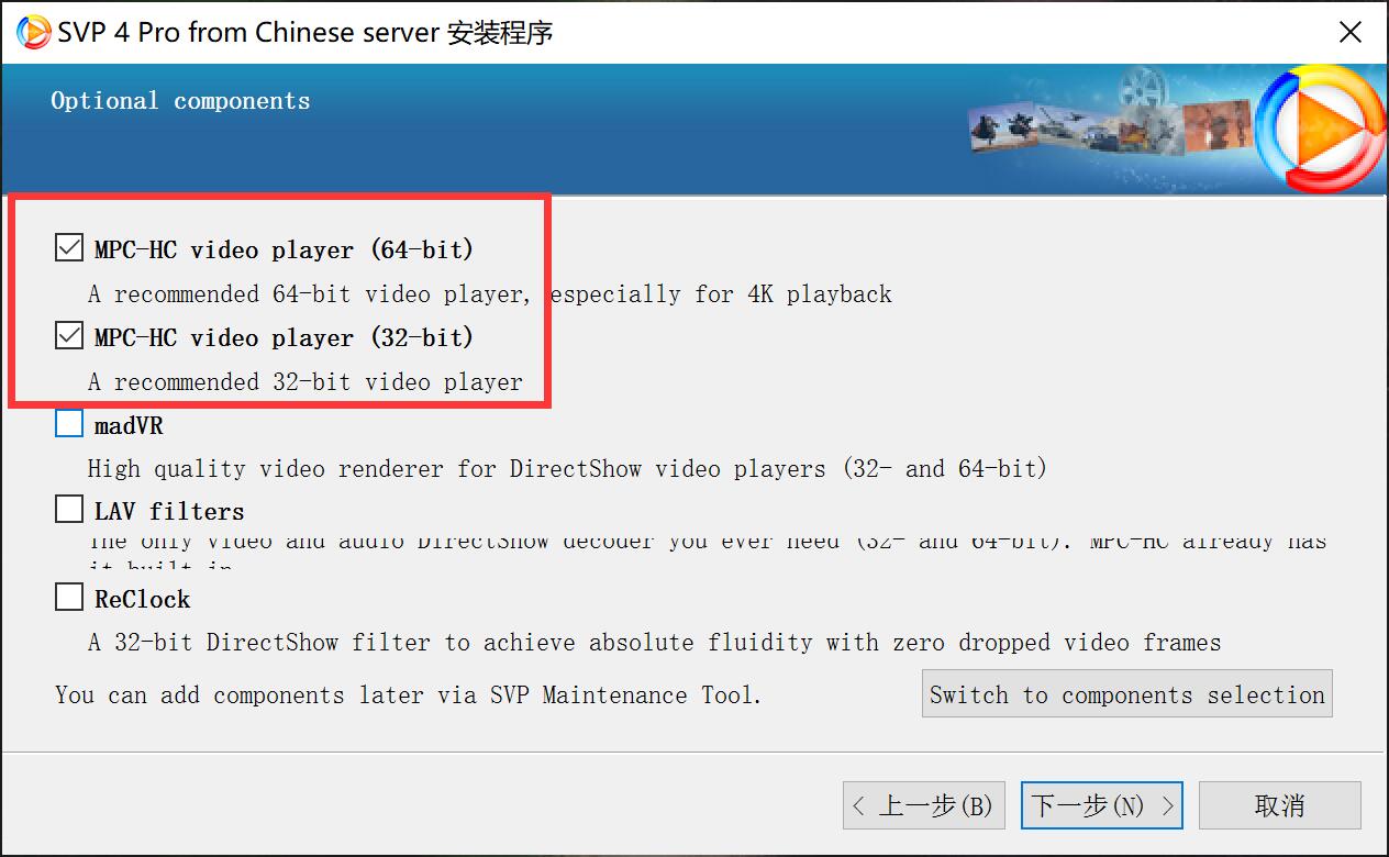 选择播放器,这里可以根据自己操作系统位 数选择,现在一般都是64位,我这里64和32全选了。