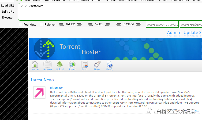 进去之后是个上传页面,需要上传torrent的文件,在谷歌上随便搜索了一个这类的文件上传并使用burpsuite抓包