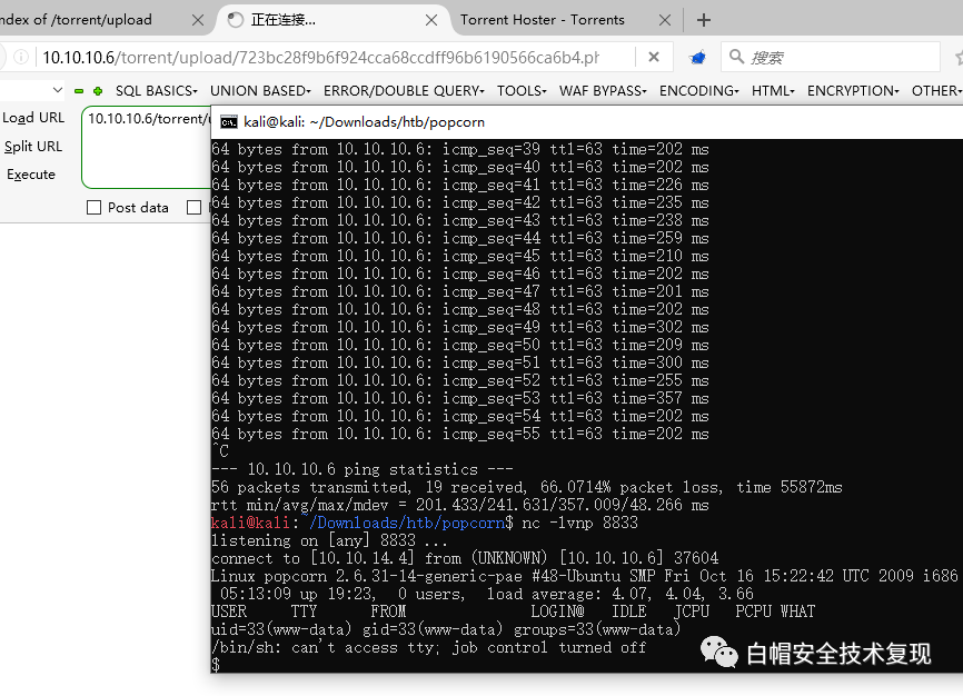 发现上面有个Edit this torrent 点击进去之后可以上传图片,正常上传了一个图片是没问题,但是上传一个php格式的文件,显示无效,尝试上传绕过,最终确认只需要使用burpsuite在上传的时候更改Content-Type的格式为image/png 等图片格式即可绕过,最后我使用 https://github.com/pentestmonkey/php-reverse-shell 上传php ,然后通过burpsuite抓包更改Content-type成功上传文件,上传成功之后猜测上传目录是upload 最终上传成功后的地址:10.10.10.6/torrent/upload