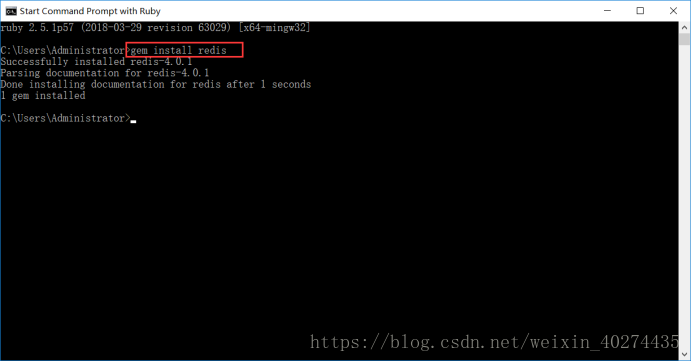 安装好后会弹出一个黑色窗体,随后需要对Ruby进行配置,执行