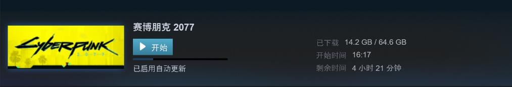 《赛博朋克 2077》连补丁在内一共 65G,可以说是近一段时间内二狗子下载的最大的游戏了,不过好在 Steam 的下载速度还是一如既往的给力,只需要 4 个多小时的等待就可以开始夜之城之旅。