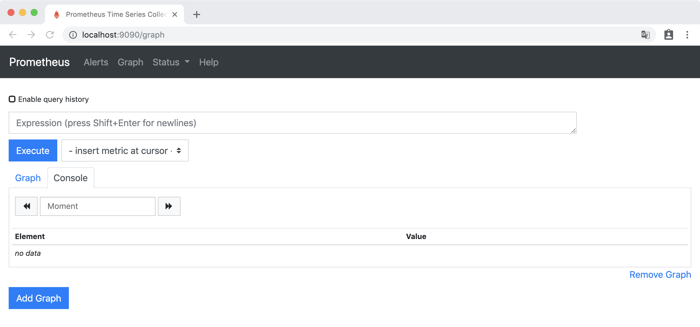 浏览器输入http://localhost:9090 ,访问 Prometheus 的 Web UI: