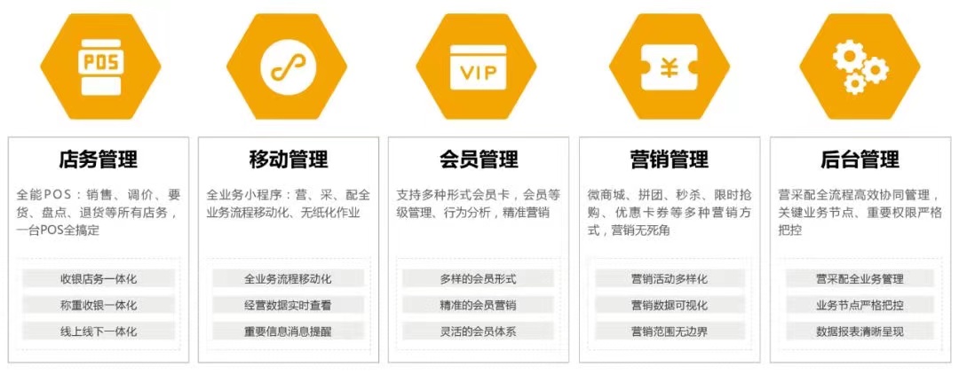采配销全业务流程高效协同:从采购需求汇总、到配送中心分拣、配送,再到线上线下销售,全业务流程移动化操作,信息互通,高效协同。