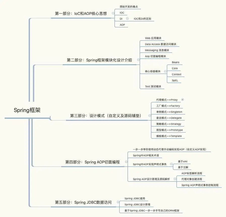 四大开源框架--MyBatis、Spring、Spring MVC、Spring Boot,清晰了解学习每个框架所需要的知识点。