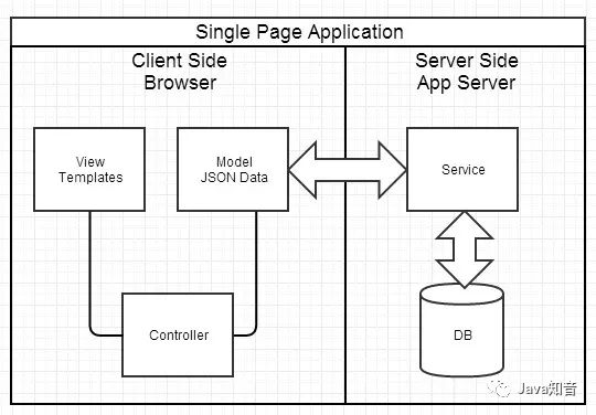 我们现在要做的前后分离第一阶段:“基于 Ajax 带来的 SPA 时代”,如图: