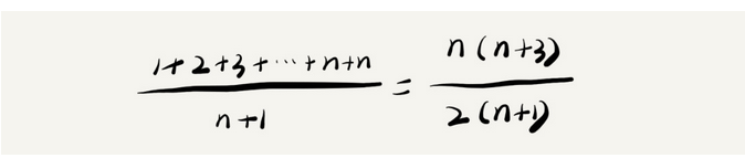 要查找的变量x在数组中的位置,有n+1中情况:在数组0~n-1位置中和不在数组中。查找需要遍历的元素个数加起来,然后再除以n+1,就可以得到需要遍历的元素个数的平均值,即: