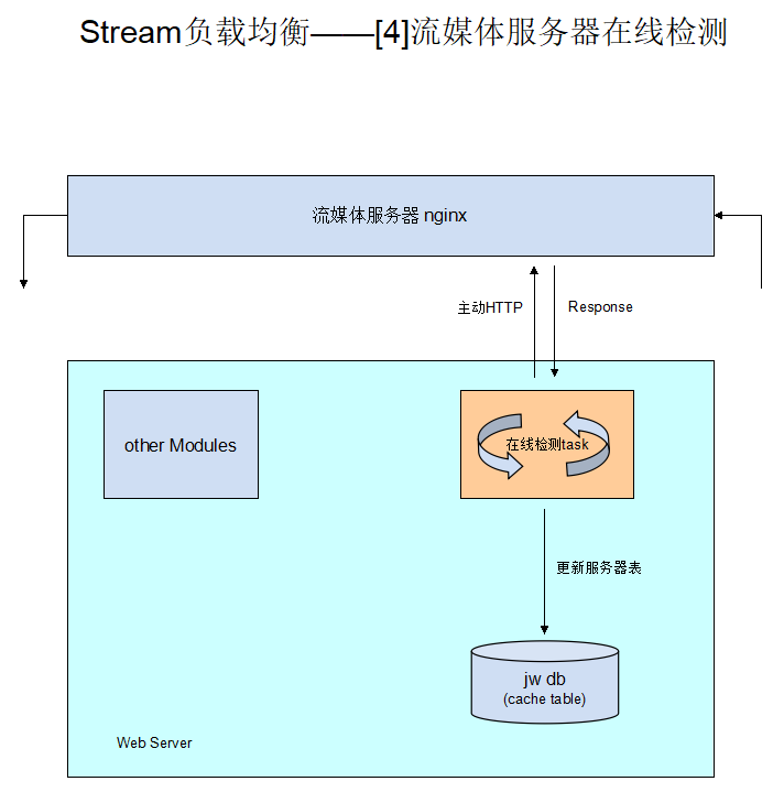 负载计算的另一个非常重要的标准就是检查流媒体服务器是否在线,如果不在线,那么这台流媒体服务器就不在我们考虑的范围之内。主动检查流媒体服务器状态: